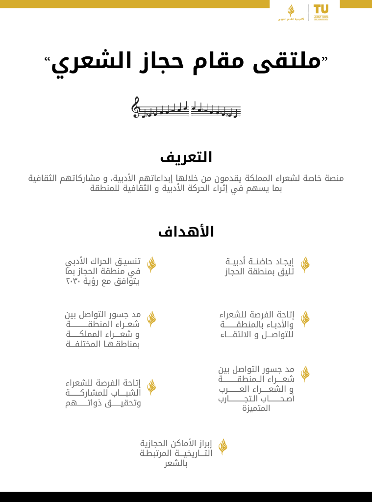 دشن سعادة رئيس جامعة الطائف أ.د/ يوسف عسيري، (ملتقى مقام حجاز الأدبي) بحضور عدد من عمداء الكليات ورئيس النادي الأدبي ومدير جمعية الثقافة والفنون ونخبة من الشعراء والأدباء والمثقفين بمنطقة مكة المكرمة.