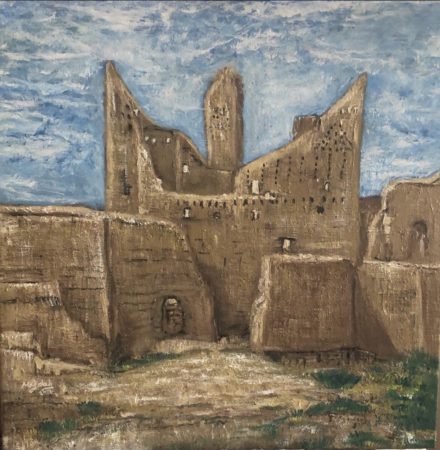 وإليكم دور فرشاتي بلوحة تأثيرية كانت عبارة عن أول تجربة أتحدى بها ذاتي وأنافس مشاعري وألواني في رسم بيوت الطين، بذلت فيها كل ما بوسعي كي أضع تفاصيل إحساسي وهو يُحاكي الحاضر بالماضي فعساني استطعت تقديم لوحة لنفسي ولبلدي الحبيب.
