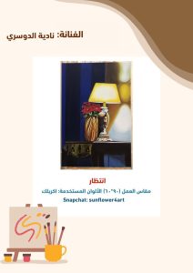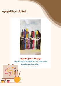 الفنانة نادية الدوسري؛ فنانة تشكلية اشتركت بمعارض فنية، وعضو بجمعيات فنية: “لم يكن دخولي عالم الفن مصادفة، تشع في خيالي ومضات ابتسامات، ابتسامة معلمتي في الروضة وهي تتامل رسمتي لفتاة بفستانها الملون، ومضة أخرى لابتسامة معلمة المرحلة المتوسطة وهي تطلب مني أن تحتفظ برسمتي التي وجدتها بكتابي، ومضة أخرى لأستاذي الجامعي حيث قام بتعليق رسماتي ببرواز على جدار مرسمه، الفن عندي ليس مجرد ألوان وفرشاة هو ابتسامات في وجه آلام القدر، تنهيدات في وجه الحزن والألم، قطرات مطر عند جفاف الروح”.