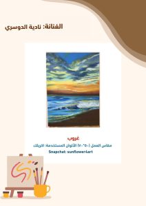 وعلى ضفاف مداد اللون ما زالت مجموعة الأنامل الذهبية تبدع وترسم لنا لوحات آسرة جمعت بين المدارس الفنية المختلفة في مواضيع شتى فتنقلنا إلى عوالم الإبداع وتأخذنا معها كطيور مهاجرة في لوحات غروب شاسعة تحمل بين طياتها الجمال. وها هي ذي المجموعة الرائعة تقدم لكم جمالًا آسرًا.
