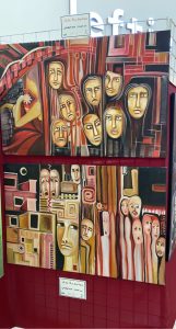 معرض مجتمع بلا عنف تنوعت لوحاته بين الواقعية والتأثيرية والسريالية، بين الألوان وأحادية اللون، لتترك بصمةً في هذا الملتقى وأثرًا يبقى متجسدًا في اللوح محفورًا بأنامل مبدعات فريق سكتش آرت.