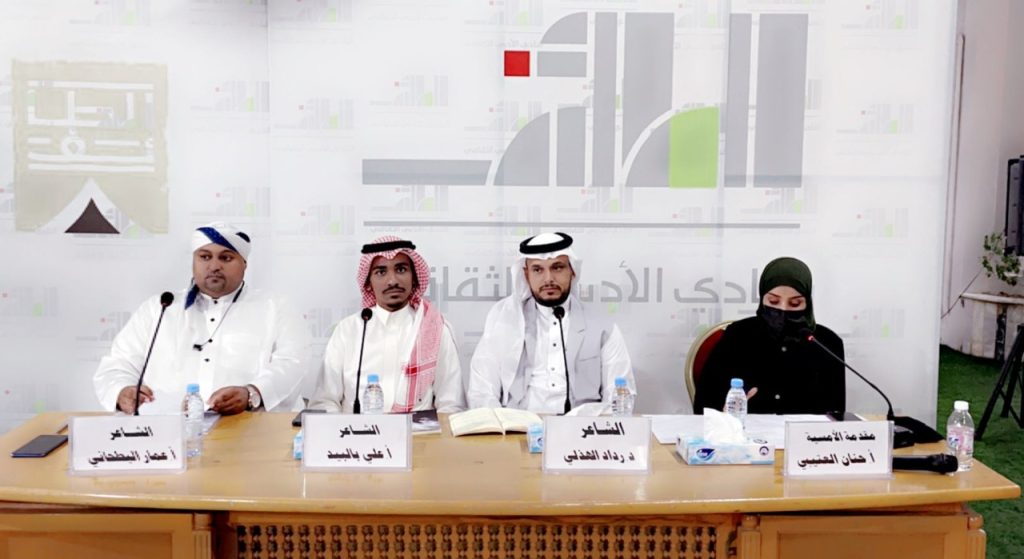 وقد بدأت مديرة الأمسية الأستاذة حنان العتيبي بالتعريف بالضيوف وذكر سيرهم الذاتية والأدبية والإبداعية حيث منحت لكل مشارك خمس جولات لقراءة النصوص الشعرية حيث بدأ الشاعر رداد الهذلي بقراءة عدد من النصوص ومما قال في إحدى قصائده: