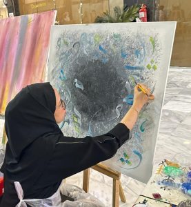 وحول الورشة تحدث الخطاط العرافي بقولة: ورشة الخط العربي التي أقيمت بغاليري “عزف الحروف” بمركز أدهم تحت مظلة النادي الأدبي بجدة كشفت عن فن بدأ يأخذ حلة وهذه حلة لونية ترتبط بأصالة هذا الفن وهو فن الخط العربي حينما ظهر في الآونة الاخيرة تعدد المسارات الفنية بين الكلاسيكية إلى التشكيل بالخط العربي وأصبحت هذه المدرسة ترتادها المواهب بشكل كبيرًا جدًا حتى ان المواهب في هذه الآونة أصبحت ممارسة بشكل احترافي من خلال التعمق في جانب التشكيل بالحرف العربي وإحنا بدورنا في “عزف الحروف” نقدم رسالة إلى كل موهوب ونفتح الآفاق لأي موهوب بحيث يرتوي من المعلومات البسيطة الأساسية لهذا الفن وهي تكمن في طريقة إعداد الألوان وكيف تكون هذه الألوان المناسبة لي معاني الحروف والكلمات وبالتالي تترجم في عمل فني على سطح اللوحة وهذه الألوان وهذه المعاني وهذه الأعمال لا بد أن تجد أحد فاهم وعاشق وله رغبة كبيرة جدا في إنه يمارس هذا الأسلوب وهو التشكيل بالخط العربي بحيث تقدم بطريقة سهلة , والآن ولله الحمد هيئة الإعلام وهيئة الثقافة تكرس جهودها لانتشار الخط العربي ، وأيضا نرى كثير من الخطاطين تألقوا في الساحة الفنية على المستوى المحلي وأيضا على المستوى الخليجي وعلى المستوى العالمي ومنهم ممن تأسس على يدي امثال الفنان المبدع ناصر السالم أيضا عبدالرحمن الشاهد والمهندس سراج وأيضا سعود خان و عبدالمجيد الأهدل والخطاط عبدالشكور ومجموعة اخرى يصعب حصرهم.