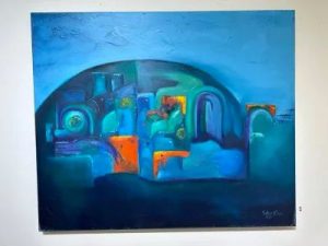 لوحة من معرض مثايل للفنانة والشاعرة زهرة خلف