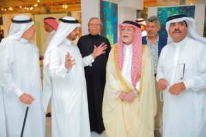 افتتح معالي الدكتور عبدالعزيز محي الدين خوجة وزير الثقافة والإعلام السابق ,المعرض التشكيلي للنادي الأدبي الثقافي بجدة “الفن للجميع” الذي أقيم في “ريادة الإبداع” بأدهم للفنون في مركز سلمى، بحضور عدد كبير من رجال الأعمال والمثقفين والفنانين والإعلاميين حيث كرم النادي مجموعة من رجال الأعمال الذين يساهمون في دعم الحركة الثقافية والفنية بجدة وهم: الدكتور علي الناقور والشيخ أحمد العبيكان والأستاذ الشريف حسين البركاتي والشيخ خالد الصيعري والفنان الرائد طه صبان، كما تم تكريم الفنانين الذين قدموا الورش والدورات بالنادي، وقد ضم المعرض التشكيلي أكثر من 170 عملًا لأكثر من مائة فنان وفنانة في كافة المدارس الفنية والخط العربي، وتم تخصيص جزء من ريع المعرض لجمعية الوداد الخيرية، التي تهتم برعاية الأيتام.