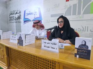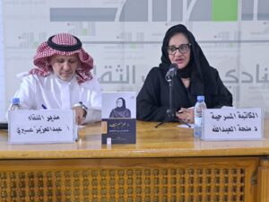 ثم قام رئيس النادي عطا الله الجعيد بتكريم الدكتورة ملحة العبدالله التي قامت نهاية الأمسية بتوقيع نسخ من أعمالها للحضور.
