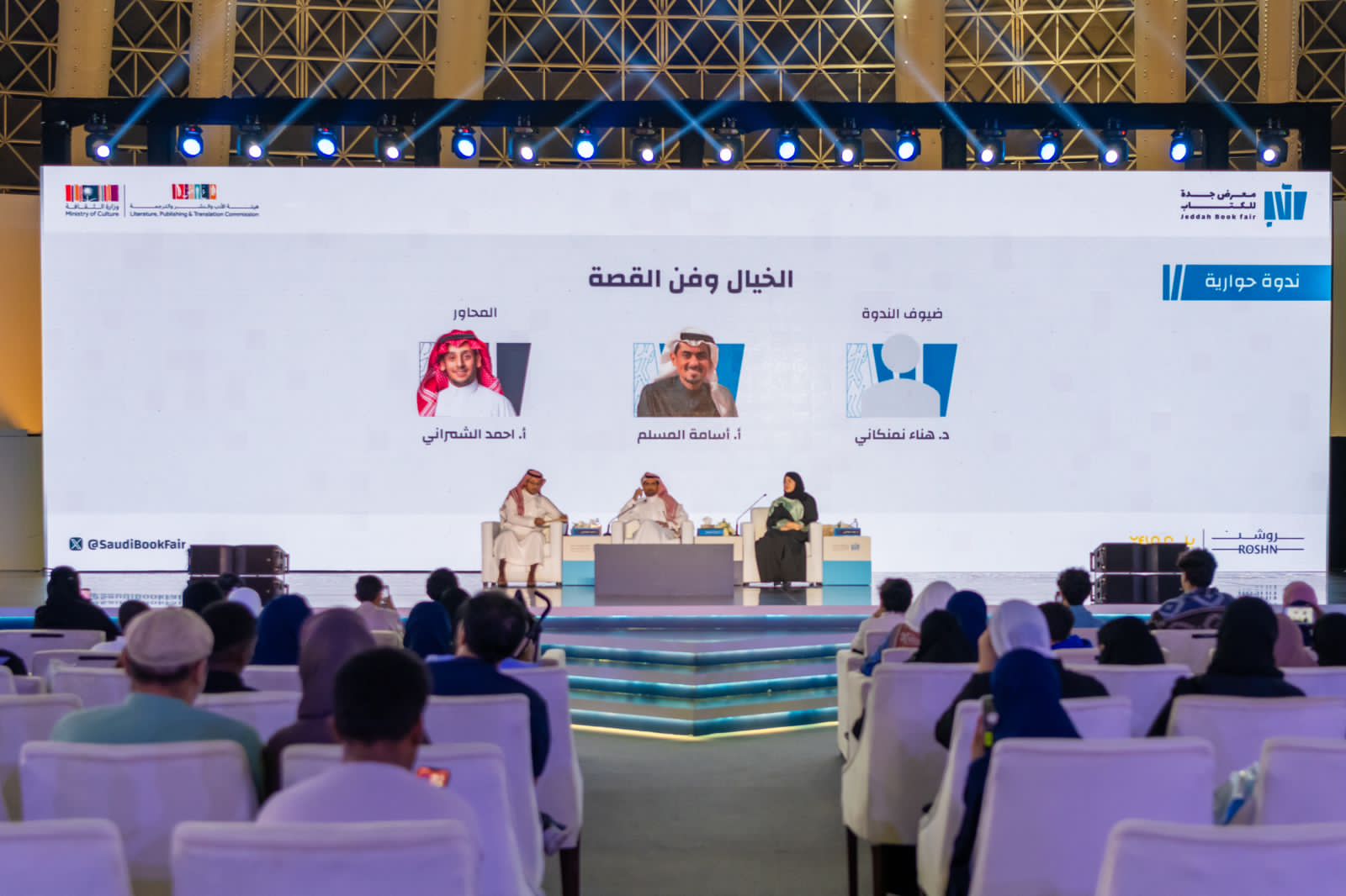 أقيمت، ضمن فعاليات البرنامج الثقافي لمعرض جدة للكتاب 2023؛ الذي انطلق تحت قبة (سوبر دوم) اليوم (الخميس) ويستمر حتى 16 ديسمبر الجاري، ندوة حوارية بعنوان (الخيال وفن القصة)، تناولت أبرز فنون كتابة القصة وعوامل الجذب بها، وتعريف الخيال في القصة وموطنه الفلسفي.