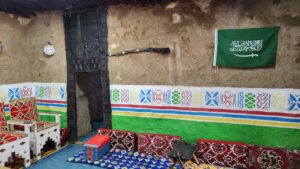 تجوَّلَ بنا مُضيفنا علي الضعيِّف، في قريته التي باتت بلدةً اليوم، وبدأتْ تتهاطلُ الذكرياتُ عليه، وهو يحدثنا عن البيوت القديمة، ونحن نمرُقُ -راجلين- من خلال أطلالها، التي أعمارُ بعضها المائتين أو الثلاثمائة عام، وكيف كان “الحَلالُ” من الخرفان والبقر، تسكن معهم في ذات البيت، ويدخلُ بنا لغُرفاتٍ مُظلمةٍ غايةٍ في الصِّغر، بتلكم البيوت الطينيَّة التي سُقفها من جُذوعِ وسيقانِ الشجر.
