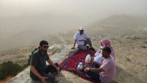 بعد استرواحنا، وأخذ القيلولة؛ طلبنا من مُضيفنا وحَلفنَا عليه أن يُعفيَنا من الغداء، وقد شعرنا بالشبعِ الكاملِ ذلك اليوم، وكأنَّ “صَبَّة” من خرسانةٍ في مِعَدِنَا، للدرجة التي رَجوناهُ ثانيةً أن يأتي بالفاكهة فقط كعشاء، من دسامةِ وثقلِ تلك الوجبة الشهيَّة، وأيم الله ليس اسمها “اللَّطف” التي يتصبَّرونَ بها، بل وجبةُ يومٍ وليلةٍ كاملتين تامتين، وانفلتَ بنا عصر ذيَّاكَ اليوم إلى حَاضرة “بلقرن” مدينة “سَبْت العَلَاية”.