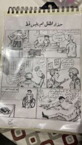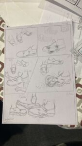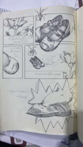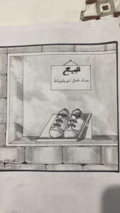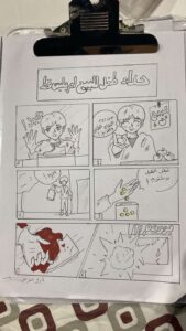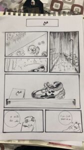 وفي نهاية ورشة الرسم اليدوي الثالثة للمدربة هند، والتي هي واحدة من سلسلة ورش فن الكومكس لفريق مساحة فن، قدمن المتدربات تطبيقاتهن لما تعلمنه من أساسيات رسم الكوميكس، حيث طلبت منهم المدربة رسمًا لأقصر قصة قصيرة والتي كان مؤلفها آرنست همنجواي وقد كانت لا تتعدى 6 كلمات وهي: (للبيع حذاء طفل لم يلبس قط). وقد برعن في تجسيدها بأشكال مختلفة وبراعة في الوصف والإخراج من خلال الرسم.