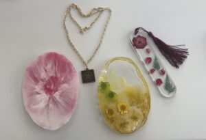 وقفة فنية مع صور من أعمال المدربة والمتدربات في فن الريزن.. أثناء “الدورة التدريبية للبرنامج”.