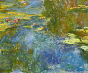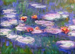 في سلسلة زنابق الماء، يلمع الضوء على سطح البركة كخيوط حريرية، بينما ينساب الظل بهدوء ليمنح اللوحة عمقًا وهدوءً داخليًا. يتغير المشهد مع تغير زاوية الضوء، فتتنقل اللوحة بين الحقيقة الحسية والتصور الشعوري، كأن الضوء يروي واللون يهمس.