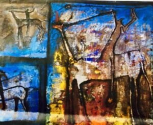 تبدأ فلسفة إدريس من حيث ينتهي الآخرون؛ فهو لا يكتفي بمحاكاة الواقع البيئي، بل يعمد إلى تفتيته ثم إعادة بنائه كأحفور بَصري قادم من فنون فجر التاريخ.