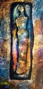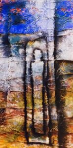 في أعماله، يبدو السطح وكأنه مقطع عرضي لتربة تاريخية؛ حيث الملمس (Texture) الخشن والنتوءات والتشققات ليست مجرد تقنيات تقنية، بل هي شهادة زمنية تاريخية، إدريس يرسم الأثر لا المؤثر النتيجة لا السبب، ويجعل من اللوحة جسماً ملموساً يحاكي قسوة الجغرافيا وعمق التاريخ، محولاً المكان من حيز جغرافي إلى حالة وجدانية ممتدة.