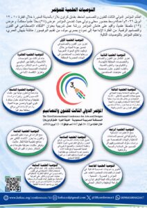 واختُتم المؤتمر بعدد من التوصيات العلمية التي أكدت أهمية تعزيز دور الفنون والتصاميم في تحسين جودة الحياة، وتكامل التخصصات لتطوير حلول ابتكارية، وتبني مفاهيم الاستدامة، ودمج الاعتبارات الإنسانية والسلوكية في البيئات المصممة، وتطوير بيئات تفاعلية تعتمد على الحواس وذكاء البيئة، مع توظيف تقنيات الذكاء الاصطناعي والواقع الافتراضي بما يحفظ الهوية والحرف اليدوية، ووضع أطر أخلاقية لاستخدام التقنيات الحديثة، وتعزيز دمج التراث في التعليم، وبناء شراكات محلية ودولية تدعم الابتكار والاستدامة وتسهم في تنمية الاقتصاد الإبداعي.