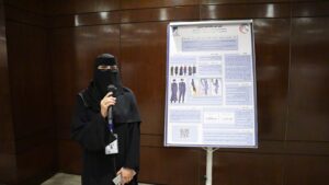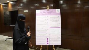 أما الجلسة العلمية الثالثة، المخصصة لعرض الملصقات العلمية، قُدمت أفكار إبداعية متنوعة، من بينها ملصق علمي للدكتورة فاطمة عبد الله محنش الشهري ،حول أزياء مبتكرة لدعم أطفال السكري، ودراسة للدكتورة حنان عبد الله آل غظيف القحطاني حول توظيف الطباعة الرقمية في تطوير ملابس السباحة، إضافة إلى مشروع تصميم عباءة نسائية قابلة للتحول لخدمة رياضة الفروسية قدمته الدكتورة جميلة ظاهر مشرف الشهري.