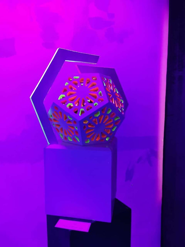 منذ الوهلة الأولى التي تدخل فيها إلى المعرض وتتأمل اللوحات ستعلم بأن خلفها أنامل خلاقة، موهوبة، فنية، مصقولة أكاديمياً، حينما يمضي يوم وراء يوم ويتحول عشق الفنون البصرية إلى دراسة أكاديمية ستكون المتعة في نقل الجمال، وكما نعلم برع المسلمون في صنع الخطوط الهندسية وصياغتها في أشكال فنية رائعة لينتجوا لنا أنماط الفن الإسلامي التي تحيط بنا الآن في أماكن متعددة، ولطالما كانت هذه الزخارف دليلًا على حس فني عظيم، بكل عناصرها من فسيفساء وأرابيسك وزخارف هندسية وغيرها، لكن اختار طلاب الماجستير في جامعة أم القرى أن يدمجوا الفن الإسلامي القديم بالفن المعاصر الحديث فجاءت فكرة دمج الألوان المضيئة بلوحات ثنائية الأبعاد ومجسمات ثلاثية الأبعاد؛ لينتج كل فنان أعمالًا مستوحاة من الفن الإسلامي بأسلوب شخصي لكل منهم، حيث خلقت هذه الأعمال والخدع البصرية انطباعًا أوليًا بصريًا ماتعًا، وتنوعت الأعمال ما بين الزخرفة والخط والأشكال الهندسية والزخرفة النباتية أو ما يسمى بالتوريق، وقد برزت بأساليب متعددة من إفراد ومزاوجة وتقابل بروح الطراز الإسلامي الغني بموضوعاته المتعددة الأمر الذي لا نكاد نجده في أي نوع آخر من الفنون.